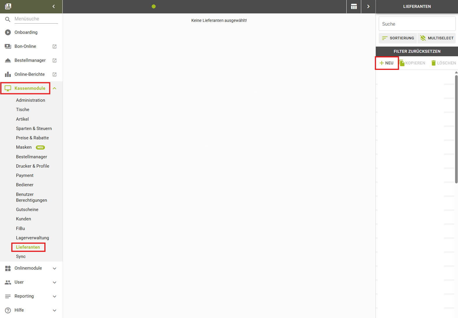 unter Kassenmodule > Lieferanten > NEU