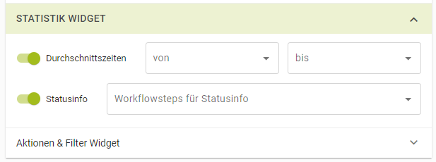 ![]() | Das Statistik Widget bietet eine Schnellindikation der Produktionszeiten, hier wird bspw. die Durchschnittsdauer eines Artikels vom Status "bestellt" bis zum Status "geschickt" visualisiert. Zusätzlich werden alle Artikel eines dezidierten Status zusammengezählt und visualisiert (z.B.: Bestellt: 17 Stück , Geschickt: 26 Stück) |