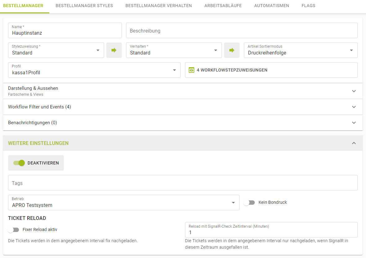 ![]() | Unter "weitere Einstellungen" lässt sich der jeweilige Bestellmanager deaktivieren/aktivieren. |