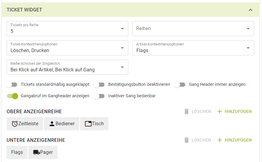 ![]() | In der Rubrik "Gesamter Ticketbereich" kann die Reihenanzahl (Standard 2), die Tickets pro Reihe (Standard 5), bzw. ob ein Ticket dauerhaft ausgeklappt sein soll, eingestellt werden. |